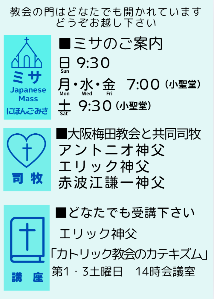 または〈梅田ブロック〉カトリック大阪梅田教会へご連絡下さい